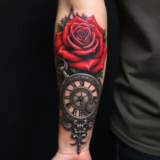 This tattoo showcases a complex arrangement of traditional Polynesian designs across the forearm. The intricate patterns are characterized by bold lines, geometric shapes, and stylized floral or natural motifs. The overall effect is visually striking and conveys a sense of strength and cultural heritage.