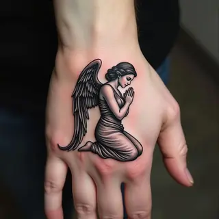 This design is likely deeply personal for the wearer, representing spiritual beliefs or honoring loved ones.