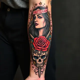 This piece exemplifies how traditional tattoo imagery can be reimagined with a contemporary flair.