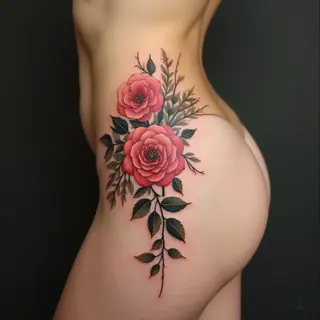 Placement on the thigh allows for a visually striking display, suitable for those who appreciate floral artistry.