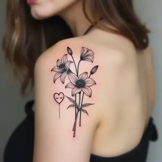 This tattoo showcases a stylized heart motif integrated with graceful, swirling lines. The illustrative style emphasizes delicate details and soft shading, creating a visually appealing and emotionally resonant piece.