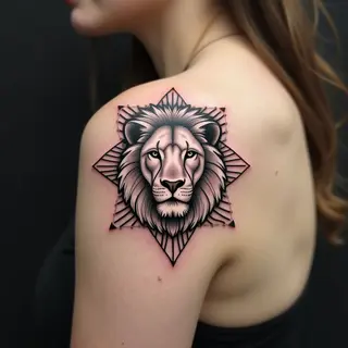 A Striking Tattoo: A Majestic Lion in a Geometric Mandala Design