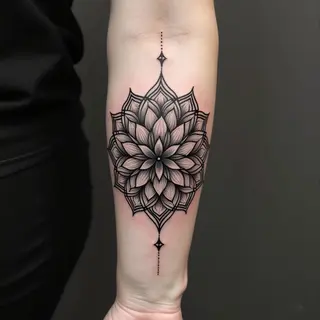 The design evokes themes of strength, courage, and connection to nature, common motifs found in traditional body art. The careful composition and attention to detail demonstrate a mastery of the craft.