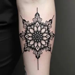 This striking tattoo showcases a complex tribal sleeve design, meticulously rendered in bold black ink. The pattern incorporates swirling shapes, geometric elements, and stylized motifs characteristic of traditional tribal art. The dense linework creates a visually captivating piece that wraps around the forearm, demonstrating impressive skill and attention to detail.