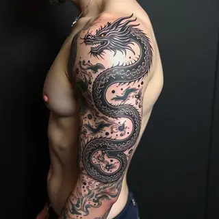 The design utilizes bold outlines, saturated colors, and traditional shading techniques characteristic of the genre. Placement on the forearm allows for clear visibility and showcases the intricate details.