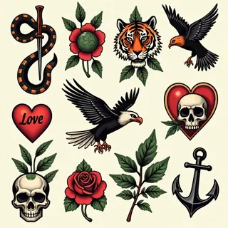 Classic linework, bold outlines, and a limited color palette are hallmarks of the old school style, while the subject matter introduces an element of intrigue and personal meaning.