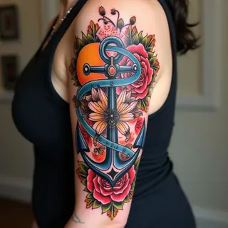- Traditional/Old School: Classic imagery like anchors, roses, or eagles with bold outlines create a timeless feel. The Americana style adds nautical touches—think ships and compasses.