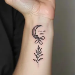 This minimalist wrist tattoo combines the imagery of birds in flight with a short, personal inscription. The birds represent freedom, hope, and aspiration, while the handwritten script adds a touch of intimacy and sentimentality. This style is popular among those seeking subtle yet meaningful body art that speaks to their inner spirit.